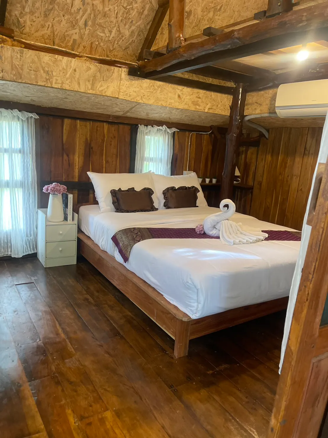 บ้าน เ ฌ อ ด า… พักได้ 2 ท่าน ราคา 1,200 บาท เสริมได้ 1 ท่านและเสริมชั้นลอยได้ 1 ท่านท่านละ 300 บาท ฟรี‼️อาหารเช้าและมินิบาร์ …บ้านไซล์เล็กๆ มีชั้นลอยสามารถปีนบันไดลิงขึ้นไปนอนได้ มีอ่างอาบน้ำส่วนตัว มีมุมหน้าบ้านสำหรับนอนเล่นพักผ่อนชิวๆริมน้ำ มีเทอเลทหน้าบ้านสำหรับทานอาหาร ปาร์ตี้ปิ้งย่างได้ สิ่งอำนวยความสะดวก Wifi มินิบาร์ กาแฟ โอวันติล ขนม ในบ้านฟรี‼️ ไดร์เป่าผม แชมพู ครีมอาบน้ำ ผ้าเช็ดตัว ปลั๊กพ่วง กาน้ำร้อน ฟรี‼️บริการเตาปิ้งย่าง ถ่าน จานชาม ช้อน แก้ว อุปกรณ์ปิ้งย่าง (ช่วยกันเก็บล้างนะคะ^^*ถ้าไม่สะดวกล้างมีค่าบริการ 200 บาทจ้า)