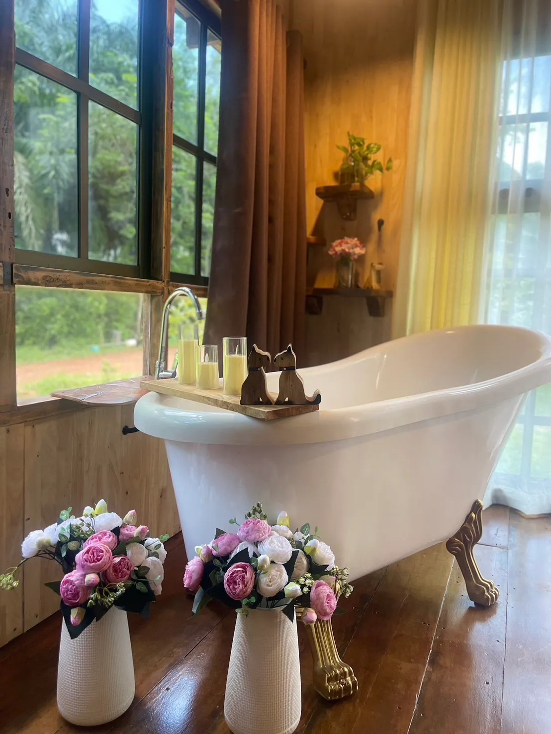 บ้าน ภั ก ดี พักได้หลังละ 2 ท่าน [ เตียงคู่ ] เสริมได้1-2 ท่าน ฟรี‼️อาหารเช้าและมินิบาร์ …บ้านภักดีจะมีบ้านจงรักใกล้ๆกัน มีอ่างอาบน้ำแช่ตัวอยู่ภายในบ้านเพื่อความเป็นส่วนตัว มีเทอเลทริมน้ำสำหรับทานอาหาร ปาร์ตี้ปิ้งย่างได้ สิ่งอำนวยความสะดวก แอร์ เครื่องทำน้ำอุ่น + พัดลม Wifi มินิบาร์ กาแฟ โอวันติล ขนม ในบ้านฟรี‼️ ไดร์เป่าผม แชมพู ครีมอาบน้ำ ผ้าเช็ดตัว ปลั๊กพ่วง กาน้ำร้อน ฟรี‼️บริการเตาปิ้งย่าง ถ่าน จานชาม ช้อน แก้ว อุปกรณ์ปิ้งย่าง (ช่วยกันเก็บล้างนะคะ^^*ถ้าไม่สะดวกล้างมีค่าบริการ 100-200 บาทจ้า)